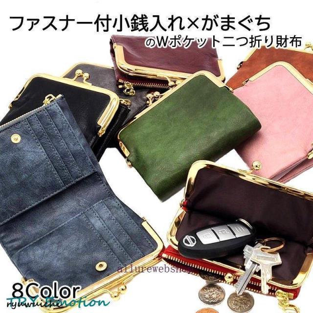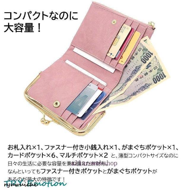 がま口財布 レディース かわいい がま口 口金 二つ折り財布 薄い 小銭入れ 札入れ 革 大容量 お札入れ 札入れ カードがたくさん入る 薄 レザー