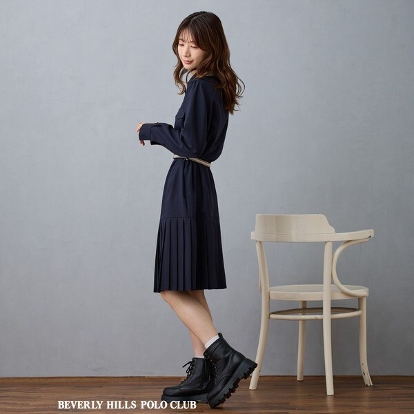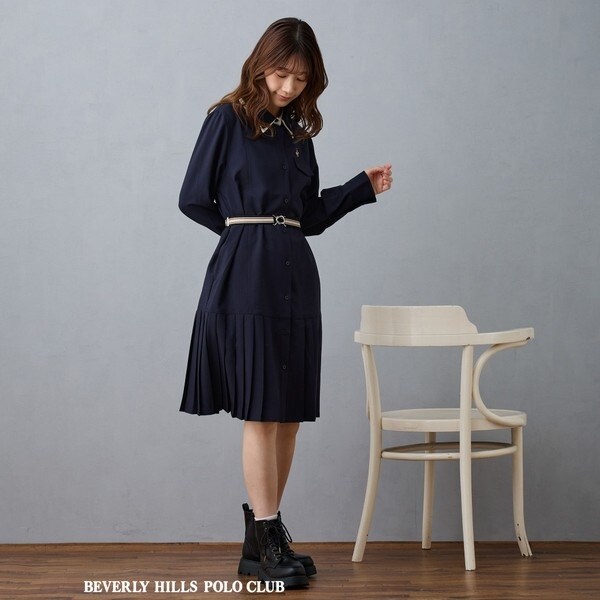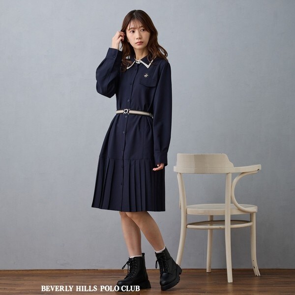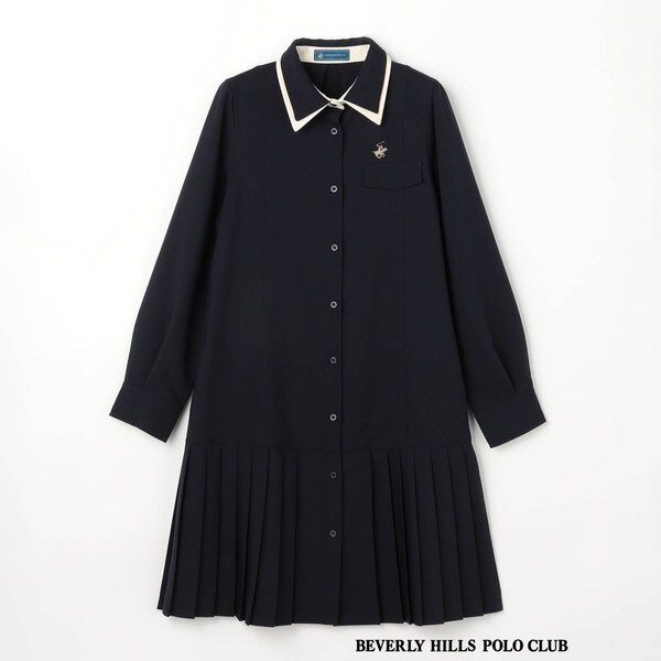 【BEVERLY HILLS POLO CLUB】ダブルカラープリーツワンピース
