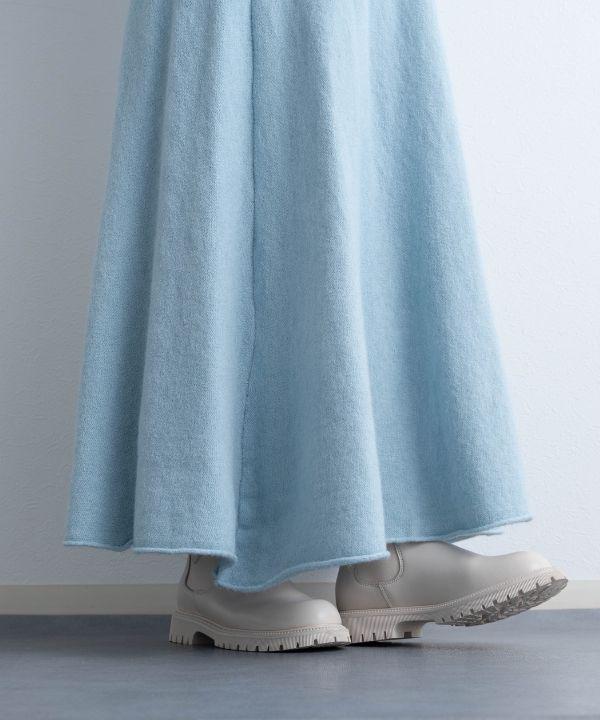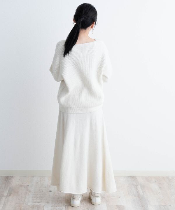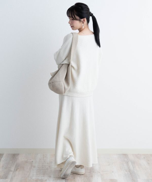 スカートは落ち感たっぷりのフレアで、身体のラインを拾いにくいロング丈