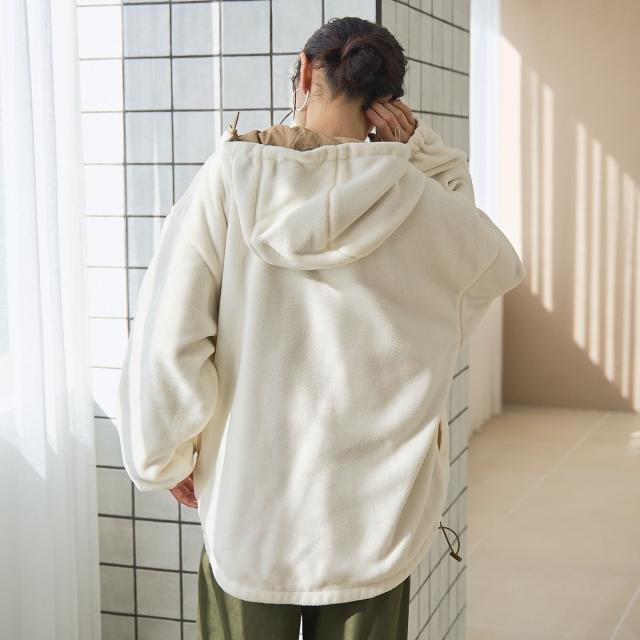 撥水性のあるナイロンと、ふわっと暖かいフリースの2WAY。気温や気分で表情チェンジが楽しめます。