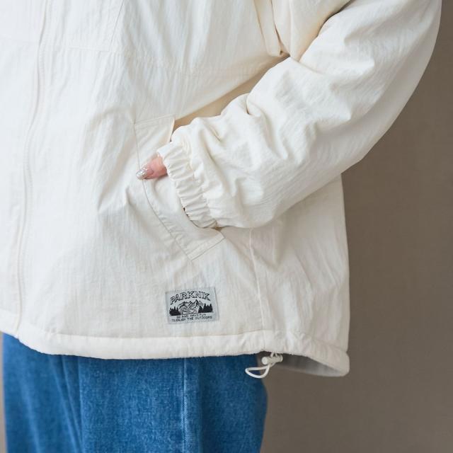 両面に施したロゴネームがポイントに。スポーティにもカジュアルにも合わせやすい万能アウターです。