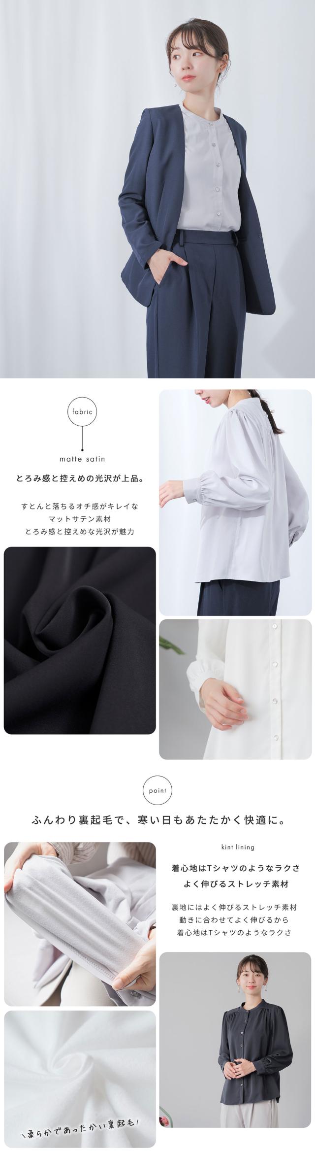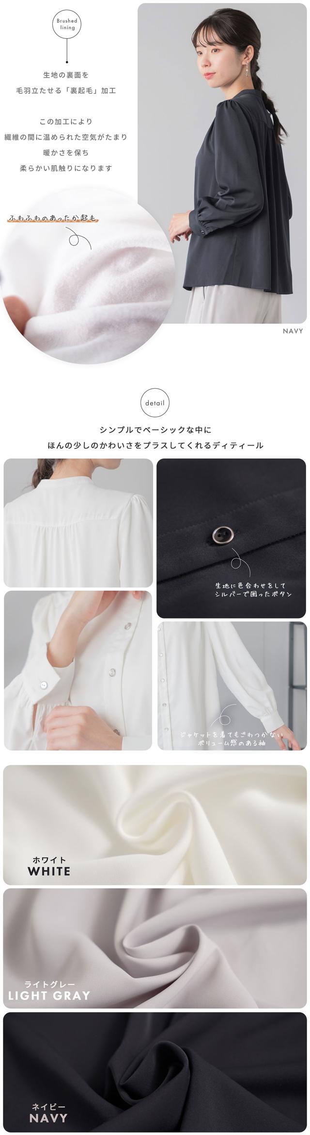 ブラウス 長袖 裏起毛 前開き シャツ レディース オフィス ビジネス 洗える ストレッチ 透けない ウォッシャブル 仕事 服装 体型カバー 二の腕カバー 一枚着 春 秋 フォーマル セレモニー 結婚式 入園 入学 卒園 卒業 式典 レセプション 行事 20代 30代 40代 50代 60代
