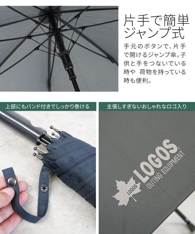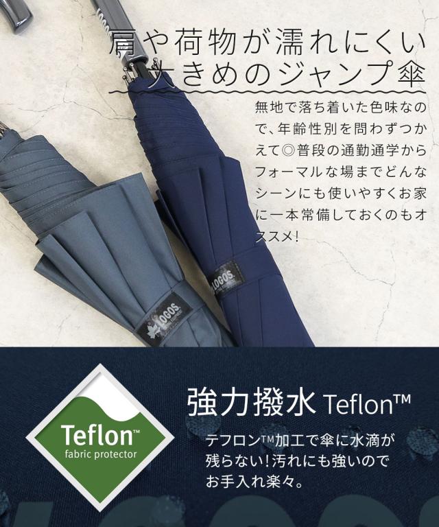 LOGOS 傘 メンズ 大きい 75cm 大判 大きめ 長傘 ジャンプ傘 ワンタッチ テフロン 撥水 丈夫 頑丈 ロゴ ワンポイント シンプル 大きいサイズ 男性 紳士 アウトドア キャンプ ブランド 公式 正規品 雨具 レイングッズ 雨傘 アンブレラ ネイビー グレー ロゴス 685833