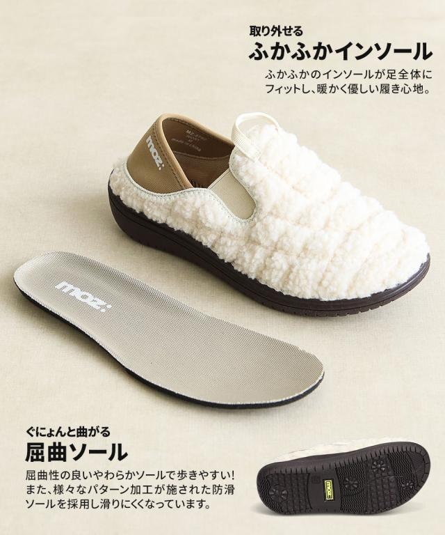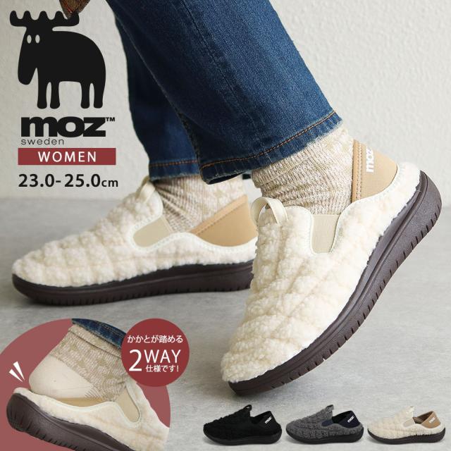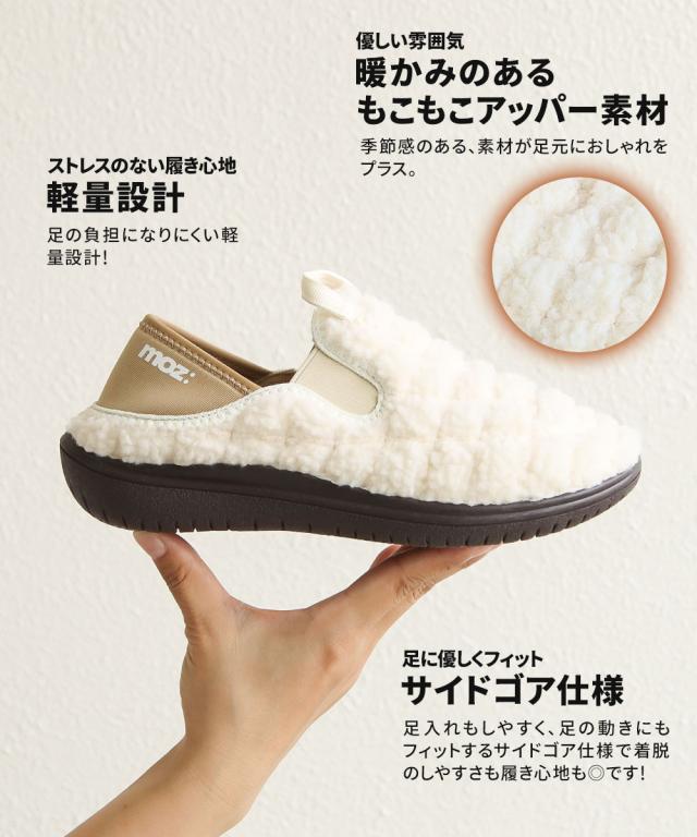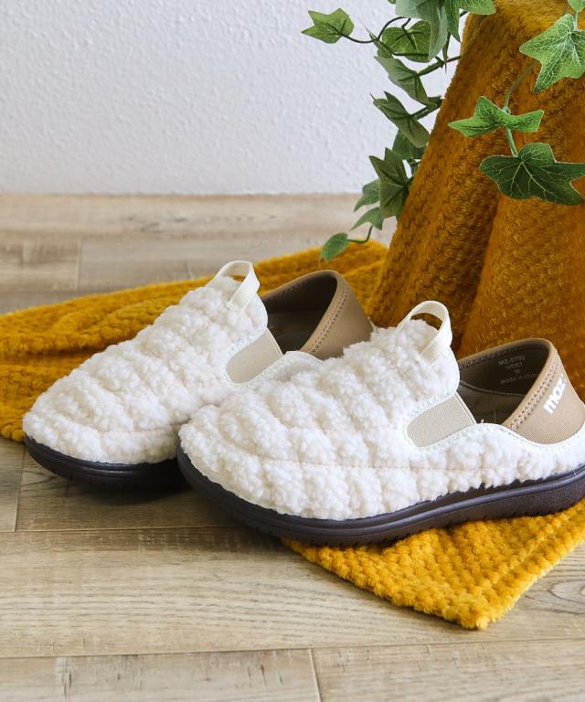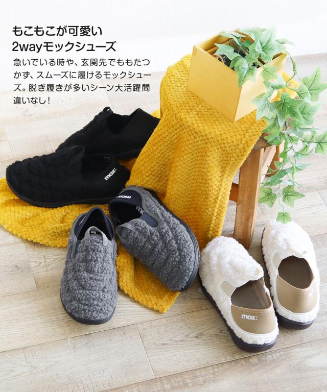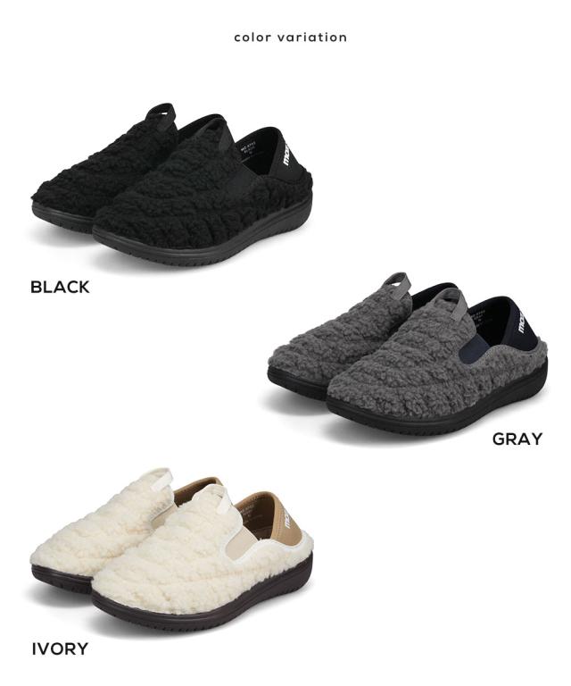 モズ moz キルティング モックシューズ レディース サボサンダル 歩きやすい スリッポン クロッグサンダル かかとが踏める 黒 ブラック グレー アイボリー カジュアルシューズ ファー ボア 暖か あったか 軽量 軽い アウトドア キャンプ 5702
