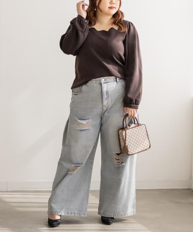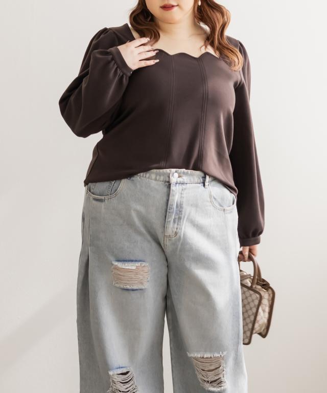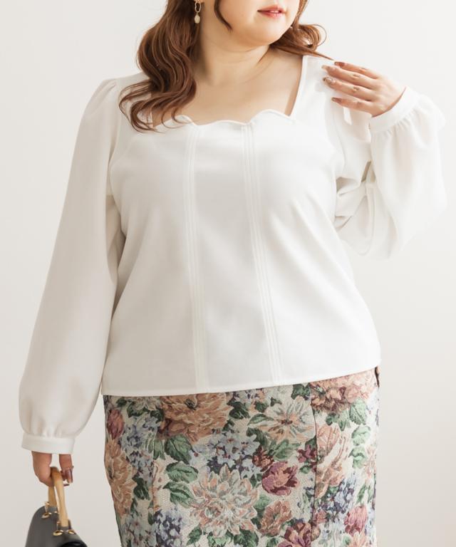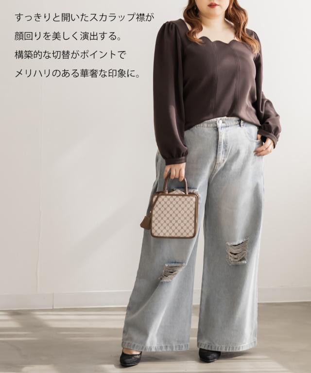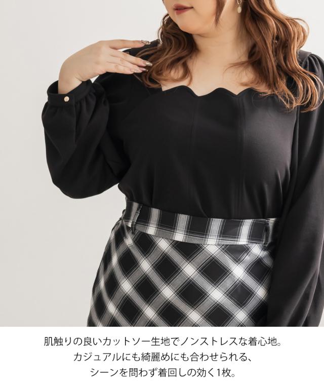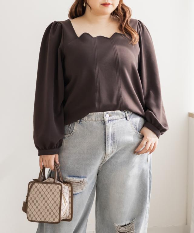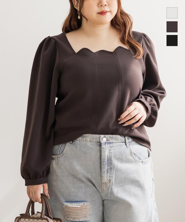 大きいサイズ/レディース/LL/3L/4L/CLETTEオリジナルスカラップ襟長袖プルオーバー