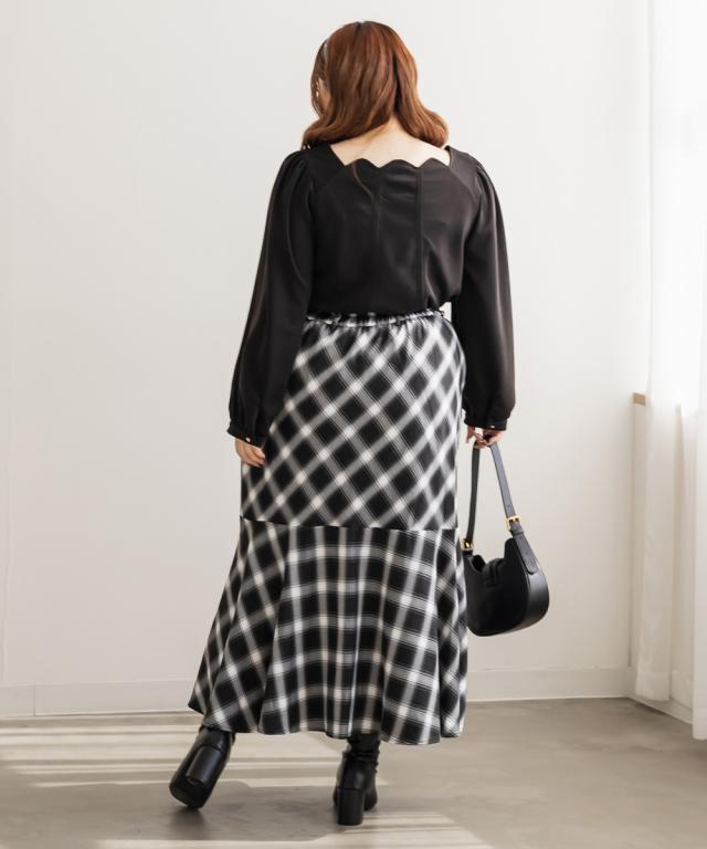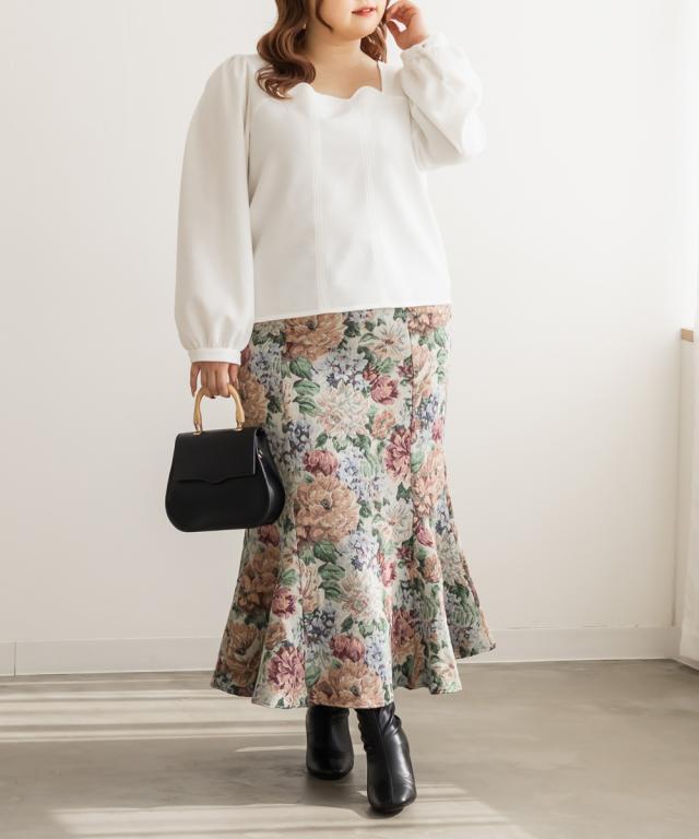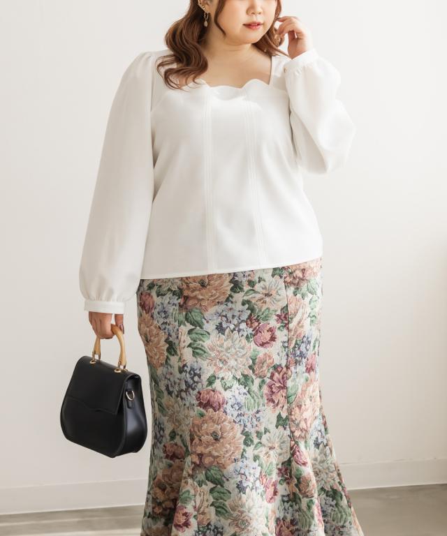 | 3Lサイズを着用しましたが程よくよくゆとりもあり、生地もやわらかくリラックスして着られました。構築的な切替が入っていて、自然に体型をカバーしてくれて、メリハリのある印象です!上品見えする生地・デザインでシンプルなのに特別感のある1枚です!首元はスカラップになっていてさりげなく華やかなのもポイントです。オフィスカジュアルなどにもピッタリで、普段使いはデニムパンツ合わせでカジュアルに、スカート合わせでフェミニンにも着回せる万能トップスです◎ |