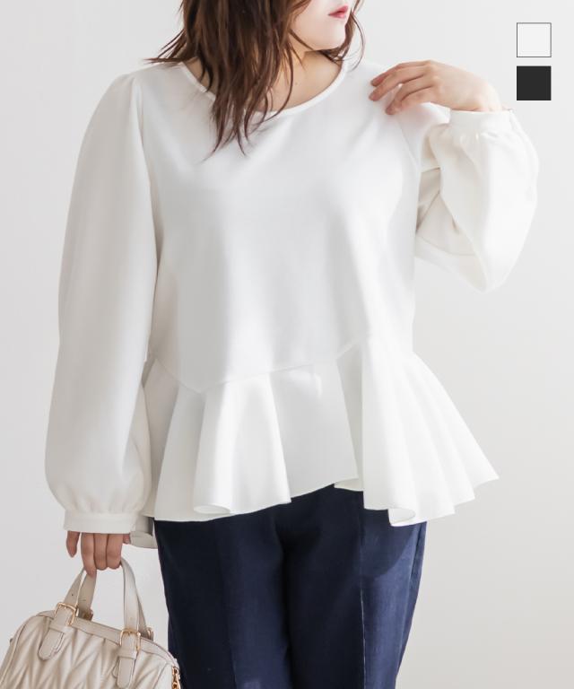 大きいサイズ/レディース/LL/3L/4L/CLETTEオリジナルイレヘムペプラム長袖プルオーバー