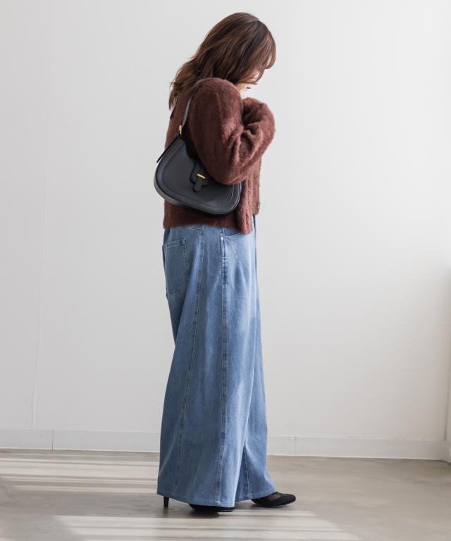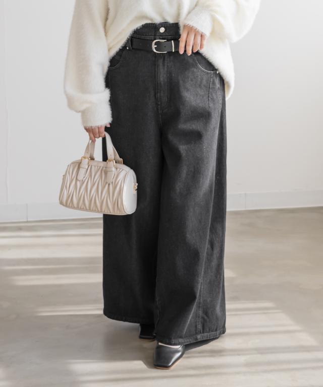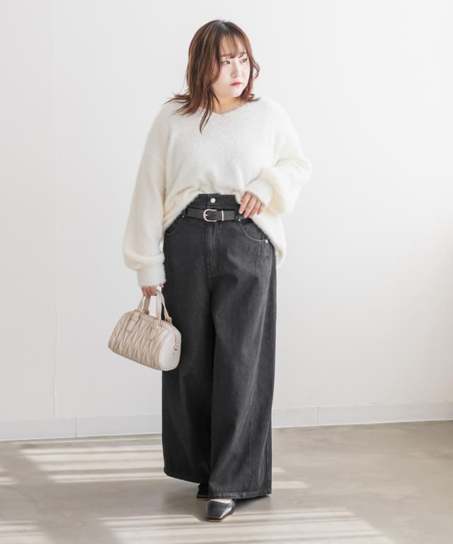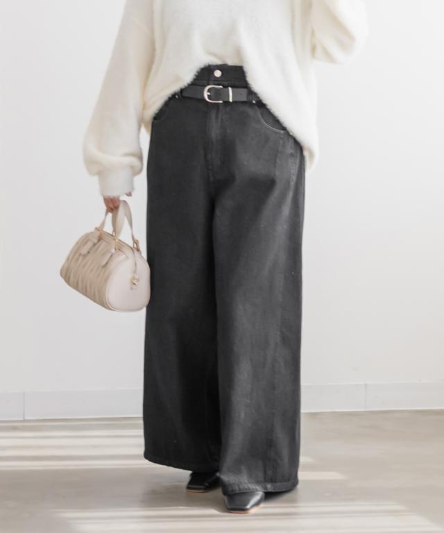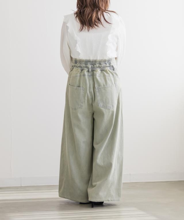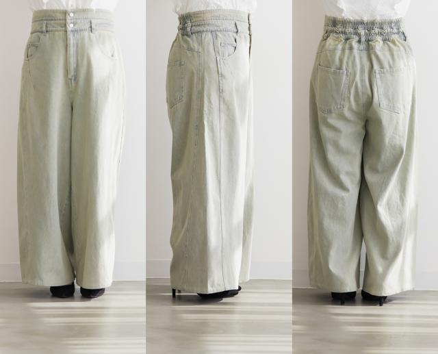 | LLサイズを着用してウエスト・ヒップも丁度良く、ラクに動けました!ワイドシルエットなのと後ろゴムで窮屈感の無い着心地でした。ダブルウエストデザインがお腹まわりをカバーしてくれて、インスタイルでおしゃれ見えします♪ハイウエストでかなりスタイルアップして見えて、トップスインとの相性も抜群です!もちろんインせずに着ても可愛いデニムシルエット・カラーなので着回し力も高いです。脚のラインを拾わないワイド感で、簡単に今っぽい雰囲気になれる1本です! |