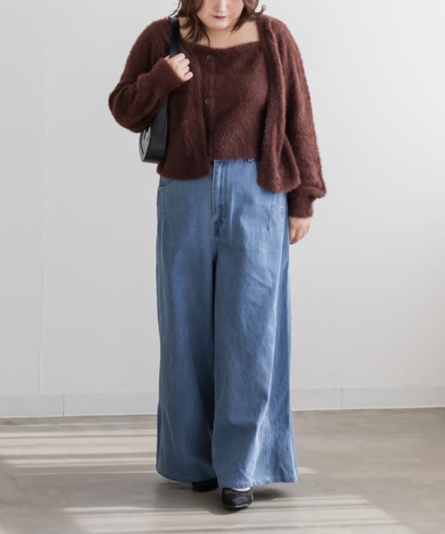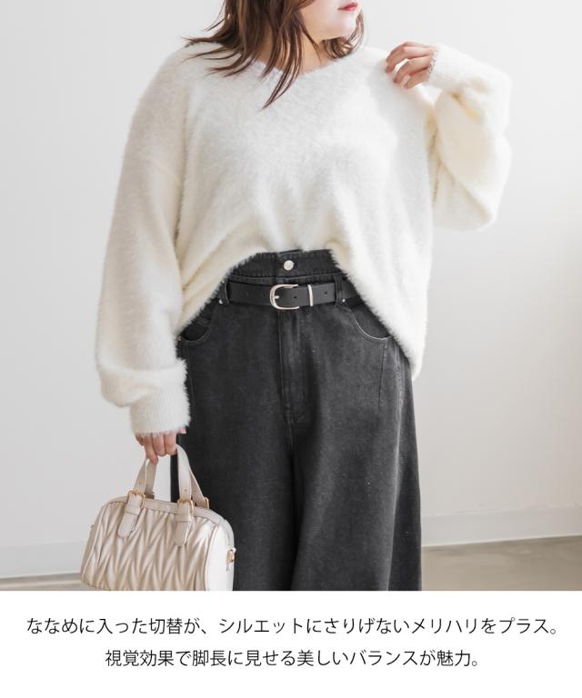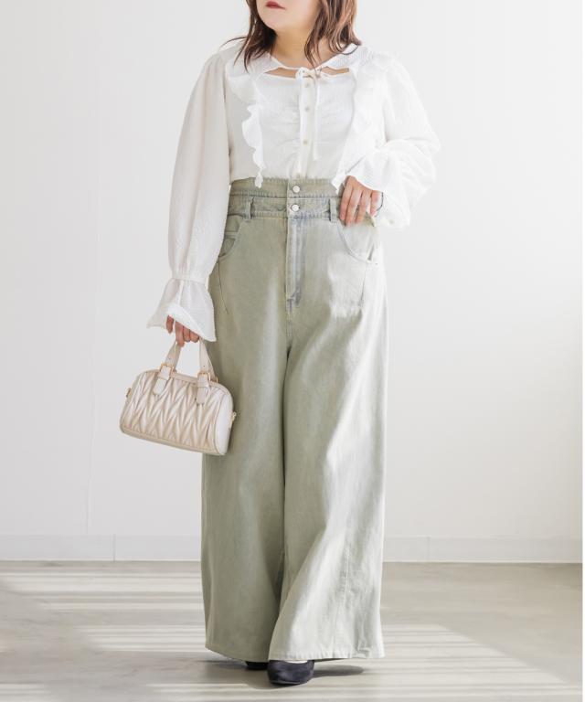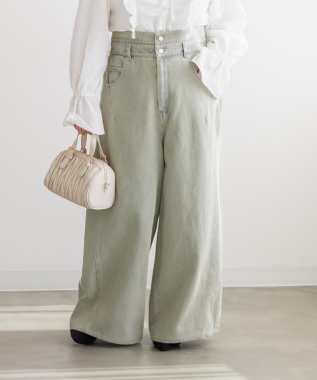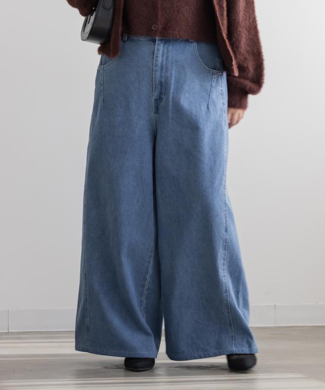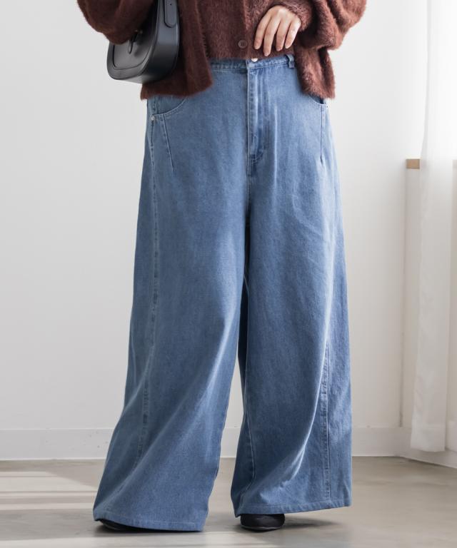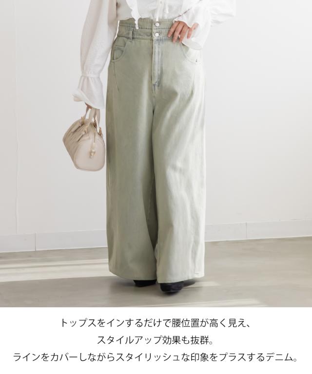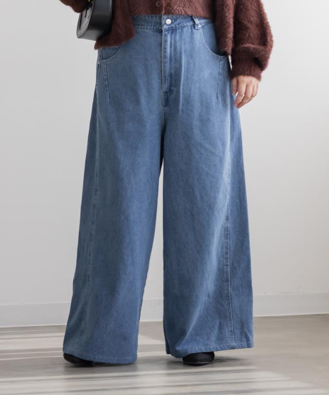 大きいサイズ/レディース/LL/3L/4L/CLETTEオリジナルダブルウエストデニムワイドパンツ