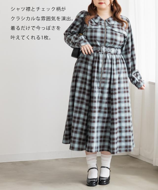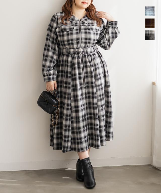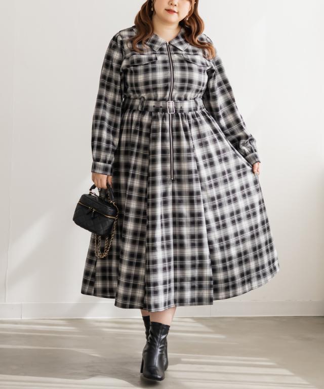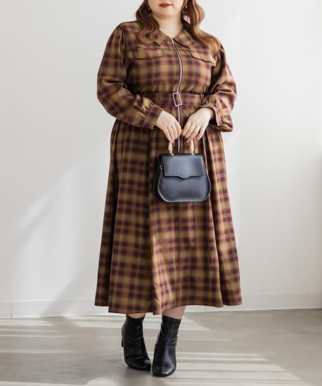 大きいサイズ/レディース/LL/3L/4L/CLETTEオリジナルチェック柄ジップワンピース
