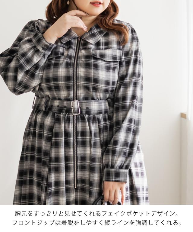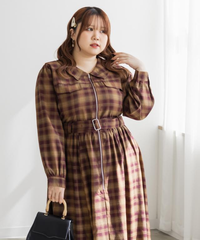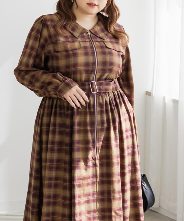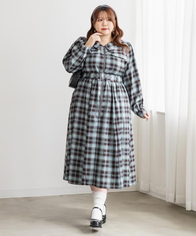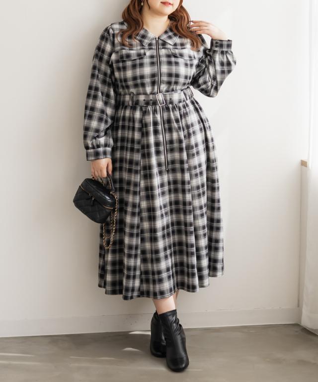 | 3Lサイズを着用しました。着用感はちょうどいいです◎ さらりとした軽い生地で、ストレスフリーに着られます!アウターを羽織ってもごわつきにくいのが嬉しいです。ベルト付きで綺麗なシルエット感で着痩せも◎ フロントジップがアクセントになって、着脱もしやすくメリハリもあって何よりデザインが可愛いです! チェック柄が今っぽく、1枚でコーデが完成する存在感のあるワンピースです♪ |