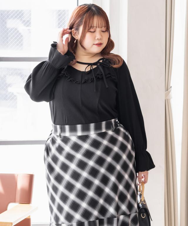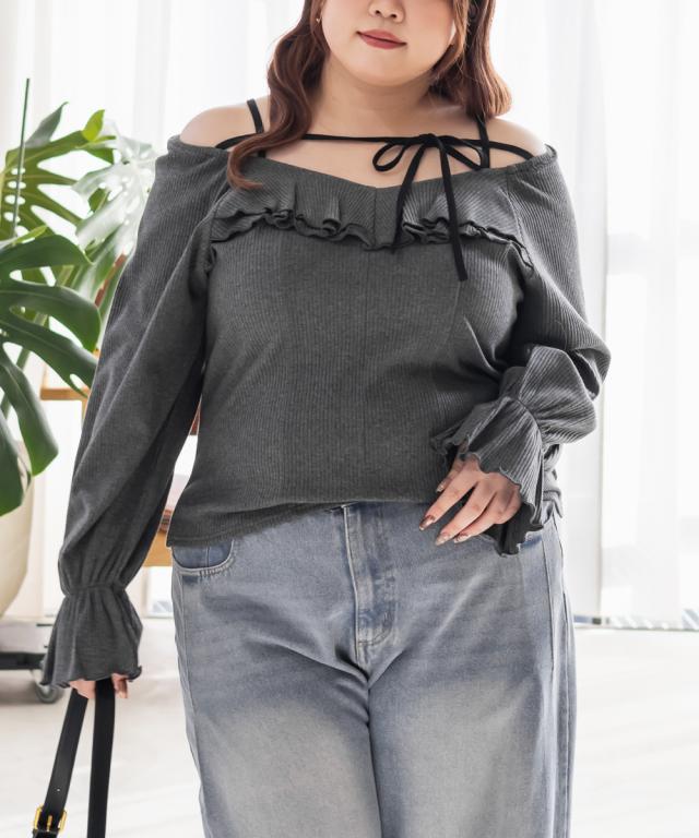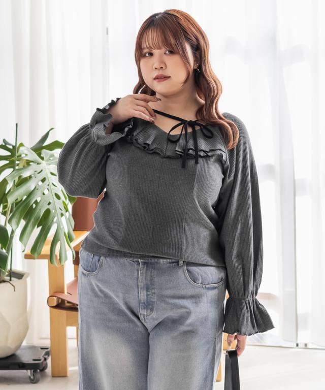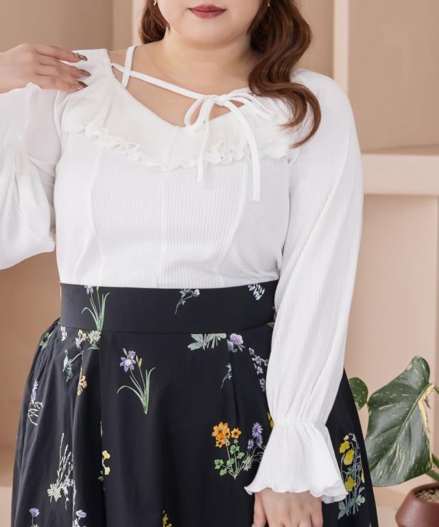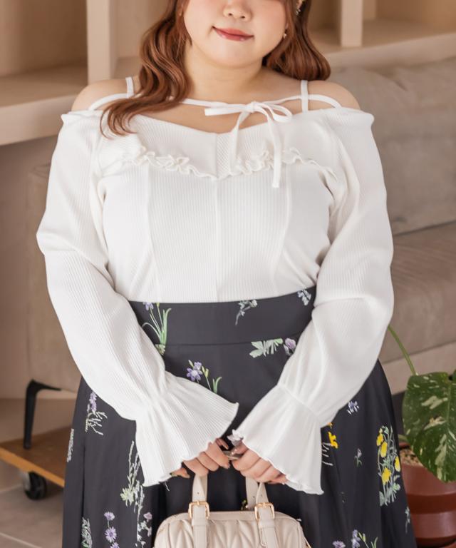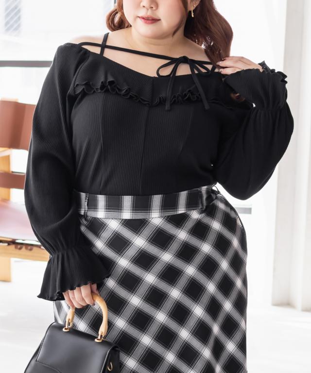 大きいサイズ/レディース/LL/3L/4L/CLETTEオリジナルデコルテリボン2WAYフリルプルオーバー