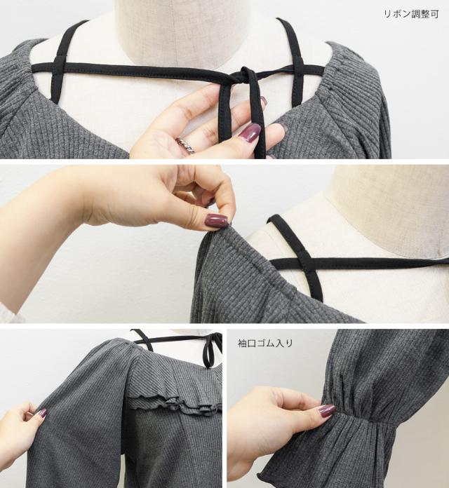 | 3Lを着て軽やかなリブ生地で、肌離れもよく快適に着られます。デコルテのリボンはネックラインにメリハリをプラスして、女性らしく可愛い印象になります♪オフショル・オンショルどちらでも着られる2WAY仕様で、その日の気分やコーデに合わせて印象を変えられるのが嬉しいポイントです。顔回りにさりげないフリルがあって程よく華やかさをプラスしてくれて、1枚で大人フェミニンな雰囲気に仕上がります。動きやすく、インでもアウトでもバランスよく着こなせました◎ |