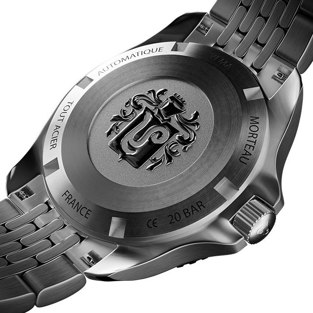 | 仕様 | 20気圧防水 パワーリザーブ:38時間 逆回転ベゼル スクリューバック スーパールミノバグレードA(針・インデックス) ねじロック式りゅうず フランス製 |