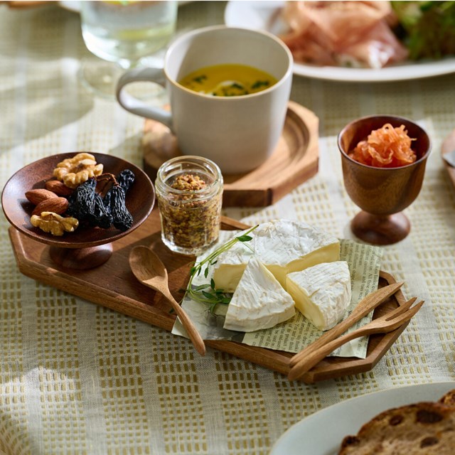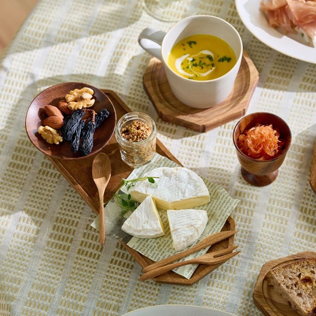 天然木ならではの優しい手触りと、丁寧に仕上げられた滑らかな質感が食卓に心地よさをもたらします。