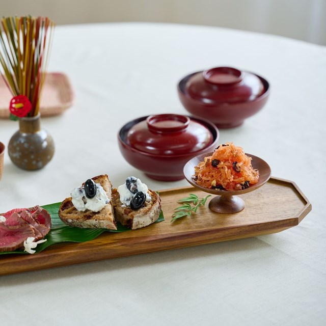 お正月にはおせち料理の縁起物を盛りつけ、クリスマスにはオードブルやディップなどを盛りつける。