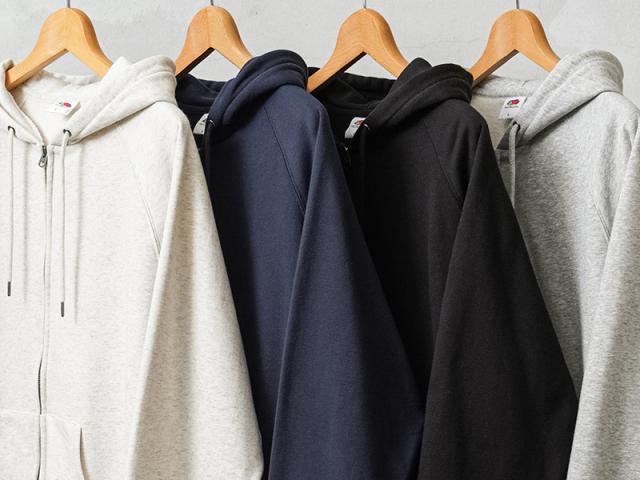 アメリカの老舗アパレルFRUIT OF THE LOOMから、ベーシックなカラーが特徴的なスウェットジップフーディーが登場しました。生地は肌触りの良いコットンを使用。タフで耐久性に優れながらも、着るたびに身体に馴染んでいく風合いが魅力です。程よい厚みがありながらも重たすぎず、デイリーに使いやすいバランスの取れた生地感となっています。