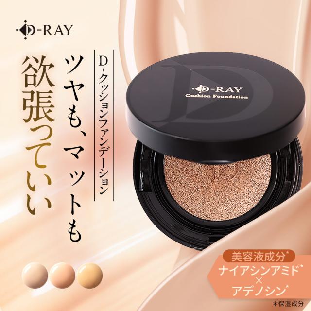 クッションファンデ クッションファンデーション レフィル パフ ケース 韓国 韓国コスメ カバー力 ナチュラル ツヤ 艶 マット セミマット ファンデーション 崩れにくい 紫外線 UV SPF50+ PA++++ 3色展開 ホワイトナチュラル ナチュラル オークル 美容成分 ナイアシンアミド アデノシン 安い メイクアップ 化粧品 年齢肌 ブランド D-RAY DRAY ディーレイ デーレイ ディレイ 20代 30代 40代 50代