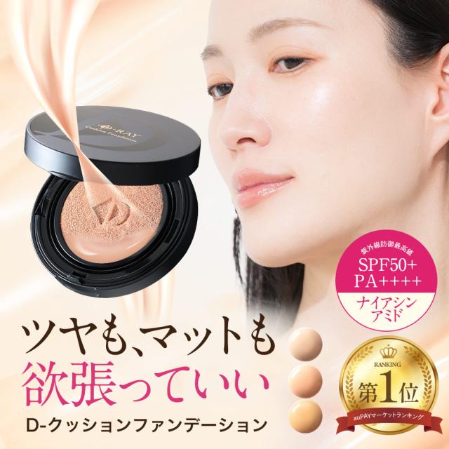 クッションファンデ ファンデーション ツヤ マット カバー力 毛穴 崩れにくい ナチュラル ナイアシンアミド 美容液成分 紫外線 SPF50+ PA++++ セミマット 素肌感 おすすめ 韓国コスメ 韓国 時短 ツヤ感 全3色 d-ray 公式 ポイント消化 送料無料