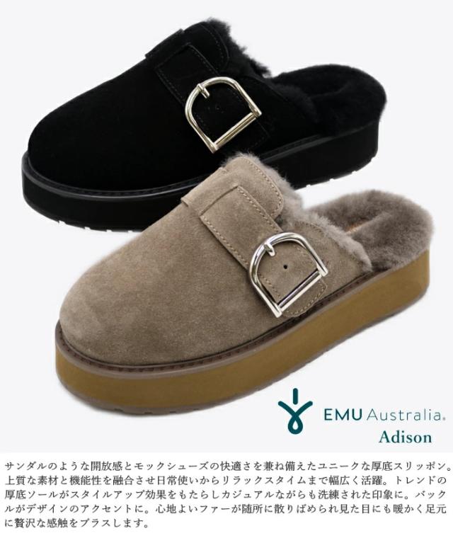 EMU Australia エミュ サボサンダル W13265 Adison シープスキン 厚底 ムートン サンダル モックシューズ 防寒 保温 ファー ボア