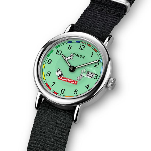 世界中で愛されるボードゲーム<MONOPOLY(モノポリー)>とタイメックスの人気シリーズ「WEEKENDER(ウィークエンダー)」がコラボレーション。ボードのグリーンをモチーフにした爽やかな文字盤に、ゲームでおなじみの駒たちが遊び心たっぷりに配置されています。
