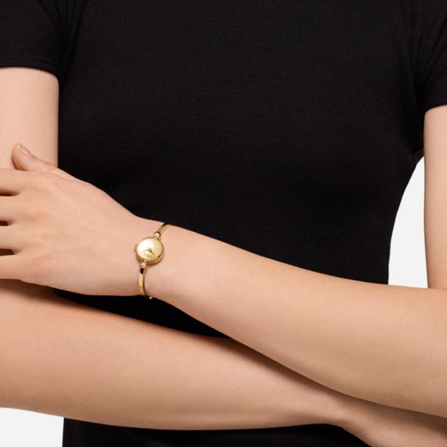 ふっくらとしたドームガラスが光を柔らかく取り込み、ダイヤルに奥行きと艶やかな表情をもたらします。ゴールドで統一されたミニマルなデザインは、まるでジュエリーのように手元を明るく演出。サンレイダイヤルの繊細な輝きが、身に着ける人の魅力を一層引き立てます。