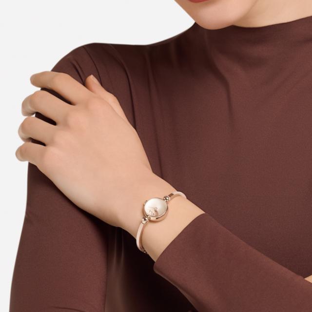 ふっくらとしたドームガラスが光を柔らかく取り込み、ダイヤルに奥行きと艶やかな表情をもたらします。穏やかな光沢をたたえたピンクゴールドの輝きが、手元にやわらかな温もりを演出。サンレイダイヤルの繊細な輝きが、身に着ける人の魅力を一層引き立てます。