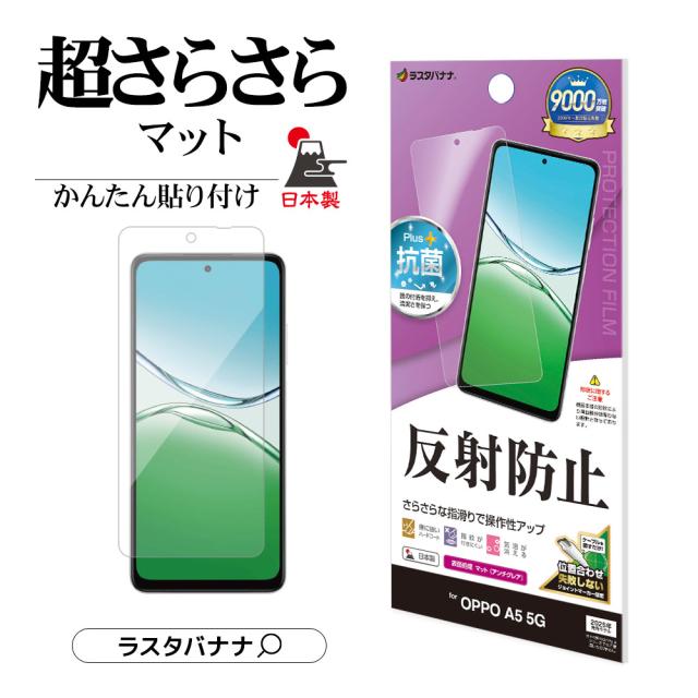 【送料無料】OPPO A5 5G フィルム 平面保護 さらさら マット アンチグレア 反射防止 抗菌 日本製 貼り付けガイド オッポ 保護フィルム TR5181OA5 ラスタバナナ