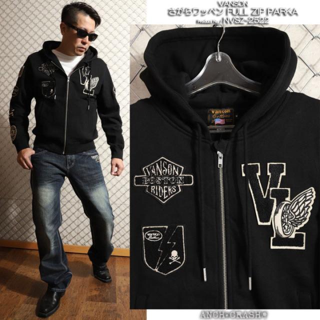 VANSON バンソン フルZIPパーカー (NVSZ-2522) 【送料無料】裏毛 刺繍 さがらワッペン