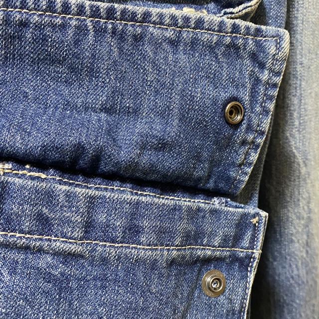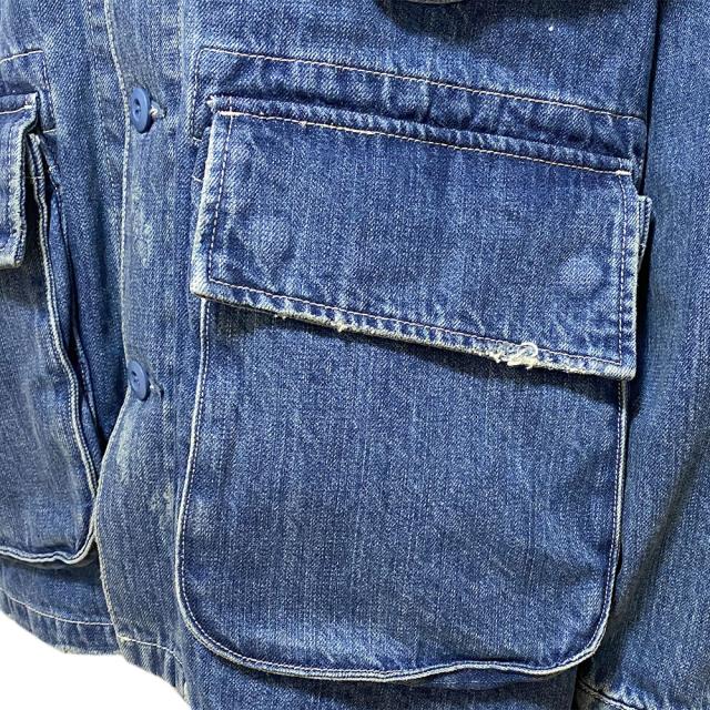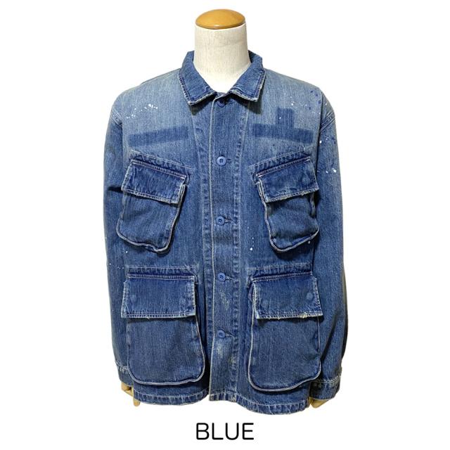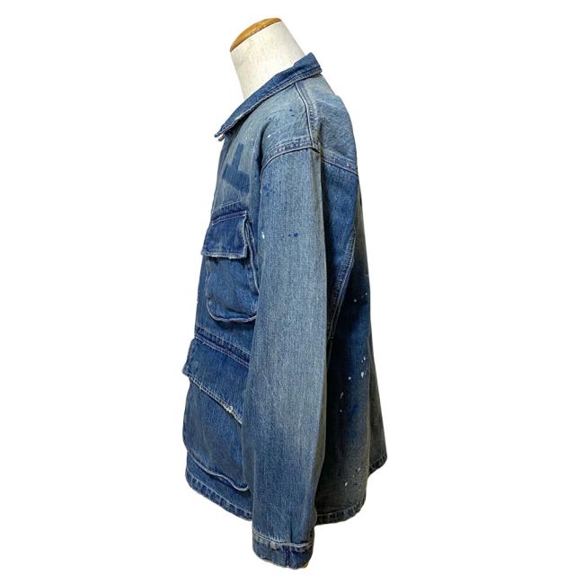 | 商品詳細 | 11.5ozのスラブデニムを使用したミリタリータイプのジャケット。 ベトナム戦争で採用され、近年ではヴィンテージ市場でも希少性の高いジャングルファティーグジャケットをベースに、Liberaidersの得意とするスラブデニムで作り、加工を施しました。 左右の胸、背面にはデニムの特性を活かし、ワッペンの剥がし跡の濃淡をデコレーションとして施しています。腰ポケットは上部のフラップポケットからはもちろんの事、脇からも手の入る仕様です。肘にはタックを設け、動きやすいように設計されています。製品洗い加工によるヴィンテージ感に加え、ペンキ飛ばしの加工が随所に入ります。 |