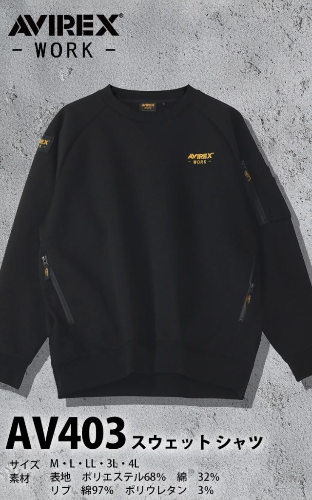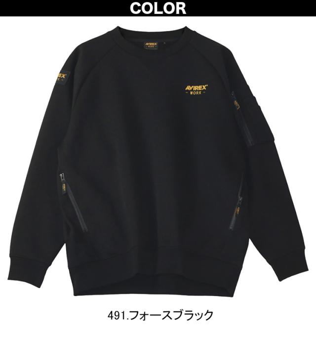 クロダルマ AVIREX スウェットシャツ AV403 アヴィレックス 長袖 多機能ポケット 保温 反射 実用性 現場 屋外作業 シンプル メンズ カジュアル ワーク おしゃれ 秋冬 作業着 作業服 KURODARUMA