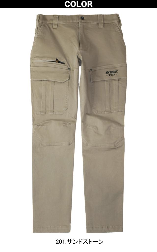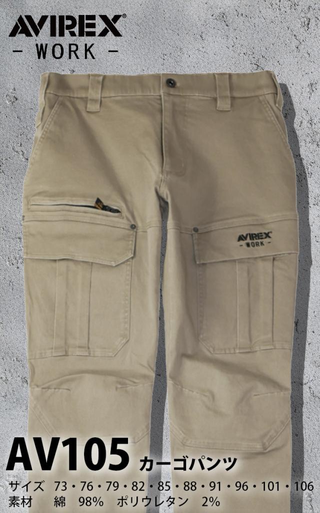 クロダルマ AVIREX カーゴパンツ AV105 アヴィレックス ストレッチ 製品洗い 膝ダーツ 動きやすい 実用性 現場 建築 屋外 倉庫 シンプル メンズ ワーク おしゃれ 秋冬 作業着 作業服 KURODARUMA