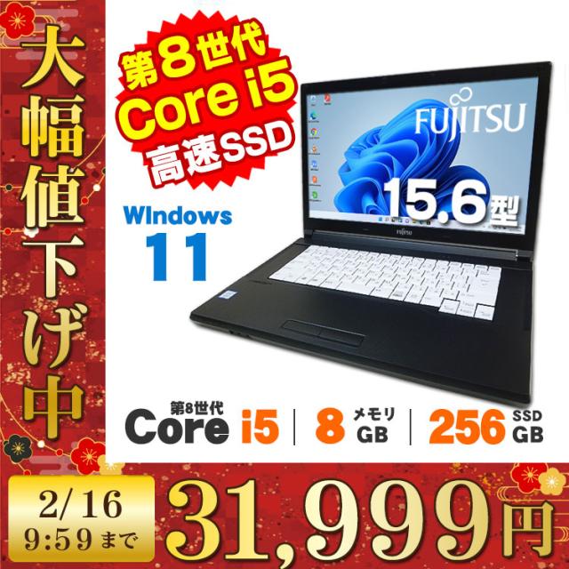 【2/16 9:59まで2,000円引き】ノートパソコン 中古 Windows11 富士通 LIFEBOOK A579 15.6インチ 第8世代 Core i5 8365U メモリ8GB SSD256GB DVDROM 無線LAN Windows11 Pro Office付き 中古 タイムセール