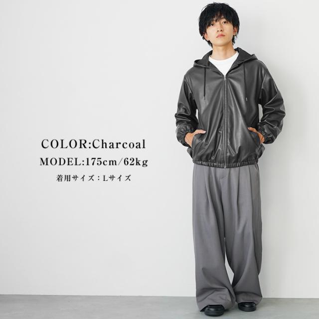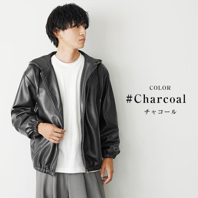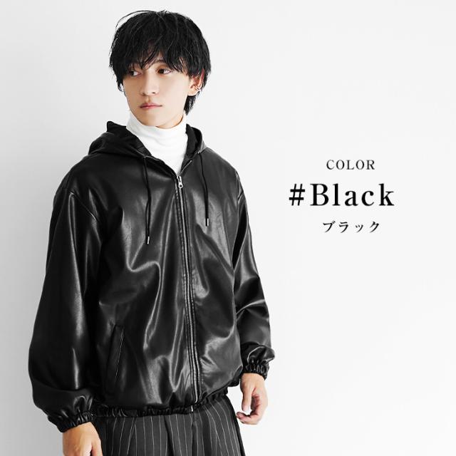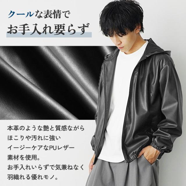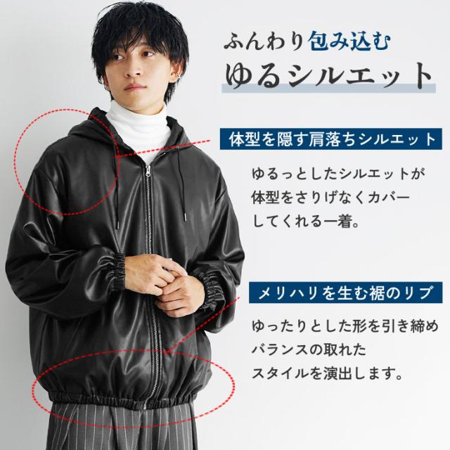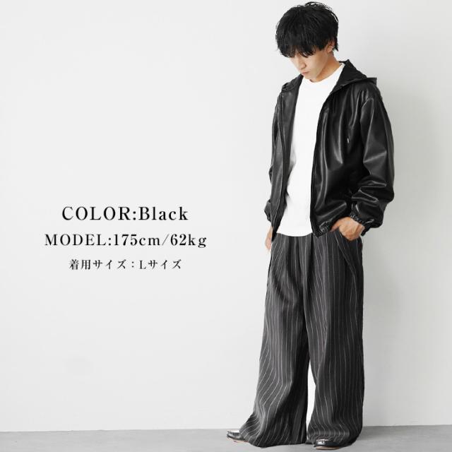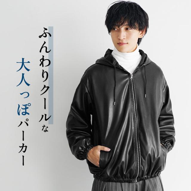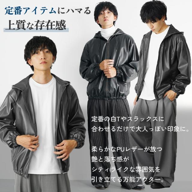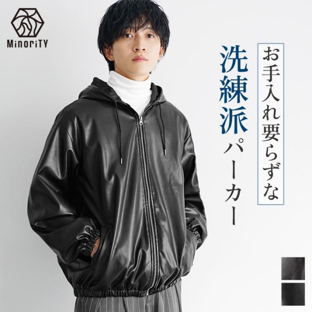 レザージャケット メンズ パーカー メンズ ジップアップ パーカー フルジップ PUレザー シンセティックレザー 長袖 パーカー メンズ 大きいサイズ ビッグシルエット ビッグパーカー 無地 韓国 ファッション マイノリティ 秋服 春服 メンズファッション minority マイノリティ