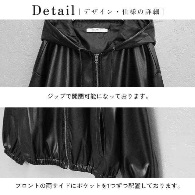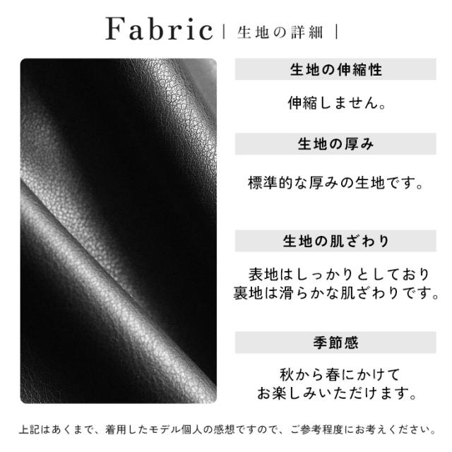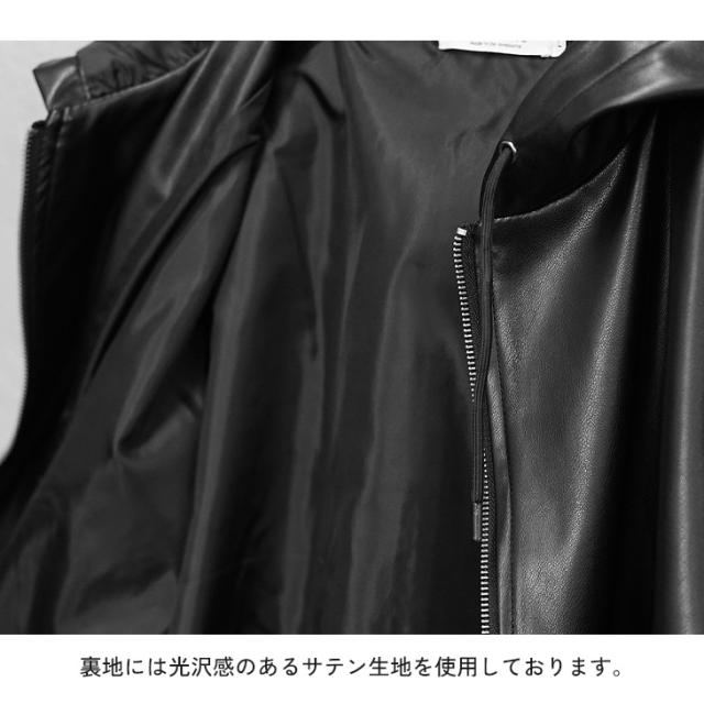 本革のようなツヤ感と質感をもつPUレザーを使用。ほこりや汚れに強くお手入れが簡単な素材です。イージーケアなので使い勝手が良くヘビロテしやすい秋冬の羽織りものです。