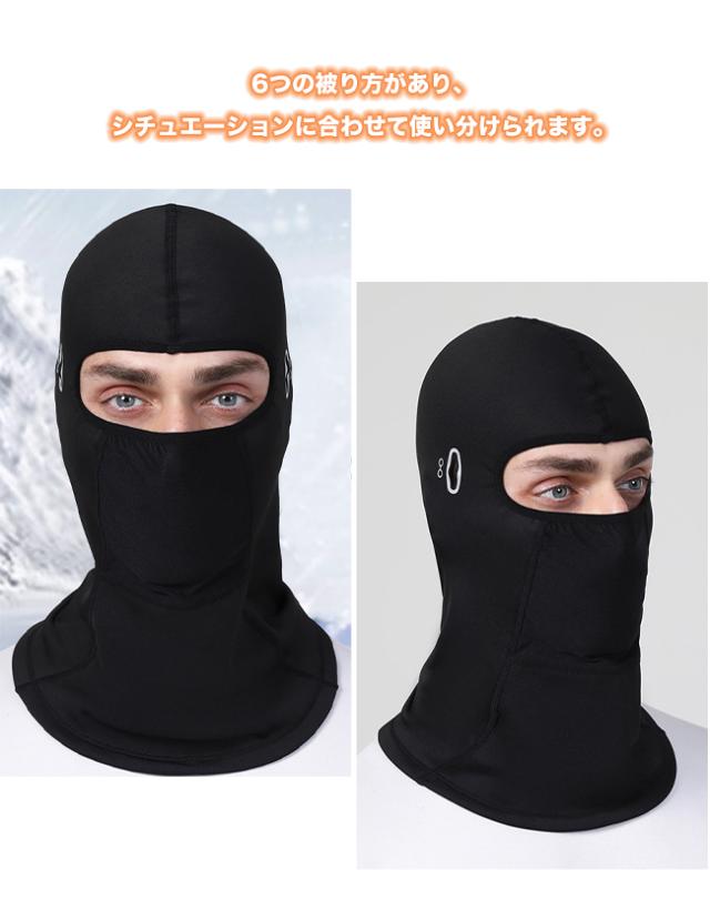 冬用フェイスマスク 防寒 秋冬 目だし帽 ヘルメットインナーキャップ 厚手 ツバなし メガネホールあり サングラス メガネ装着可能 眼鏡 自転車 ロードバイク オートバイ フェイスカバー