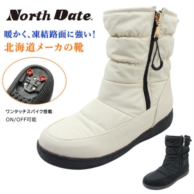 ノースデイト レディース スパイク スノーブーツ 25740 防寒 防滑 防水 ファスナー ダウンブーツ ハーフ丈 NORTH DATE ダテハキ 北海道