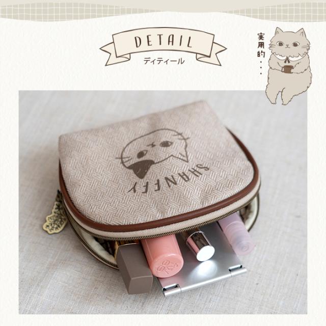 ポーチ 可愛い おしゃれ シェルポーチ 小さめ 化粧ポーチ 丸型 レディース ファスナー 猫 ねこ キャラクター SNS 漫画 軽量 ポケット ギフト対応可能 送料無料