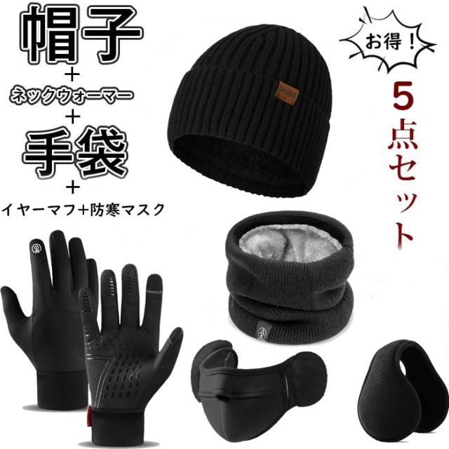 【まもなく在庫切れ!!!】防寒5点セット 【ニット帽子+ネックウォーマー+防寒手袋+イヤーマフ+防寒マスク】 メンズ レディース 防寒 保温 ニット帽子 ニット 裏起毛 もこもこ レディース ニットキャップ スノボ シンプル 釣り 登山 自転車 バイク 雪遊び ギフト