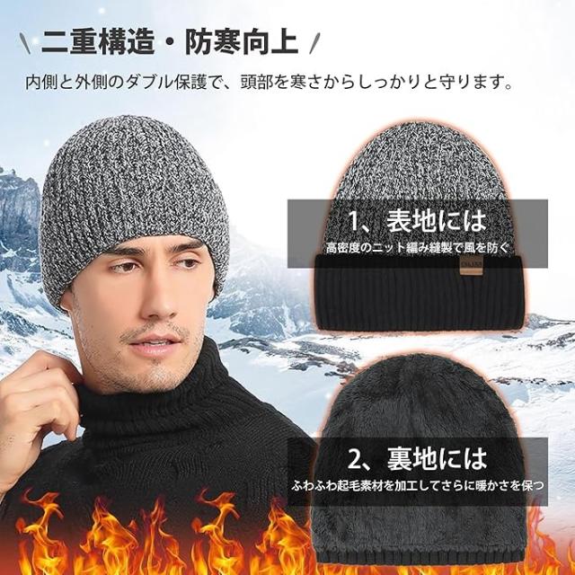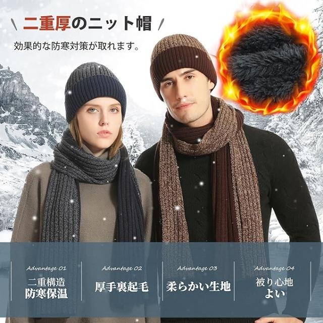 【ソフトで快適な着心地】高品質な素材で作られ、帽子の外側は厚くニット製であり、効果的に寒さに耐えることができ、ニット帽子とネックウォーマーの内側は、非常に柔らかく感じるの裏起毛生地で、肌触りが非常に柔らかく、着心地が快適です。寒風吹きすさぶ冬に、頭、耳、首、手を暖かく保つことができる。