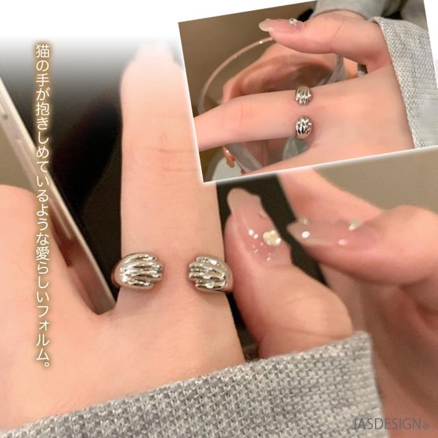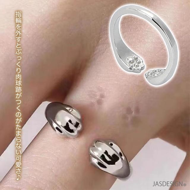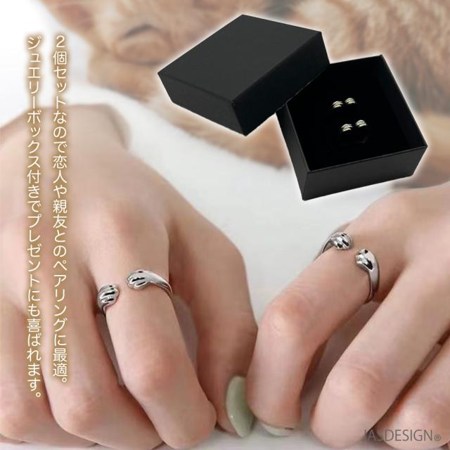 猫 指輪 肉球 リング 猫リング 2個セット レディース オープンリング シルバー 跡が残る にくきゅう フリーサイズ サイズ調節可能 ペアリング ファッションリング プレゼント カップルリング ねこ かわいい おもしろ 送料無料 JM-436