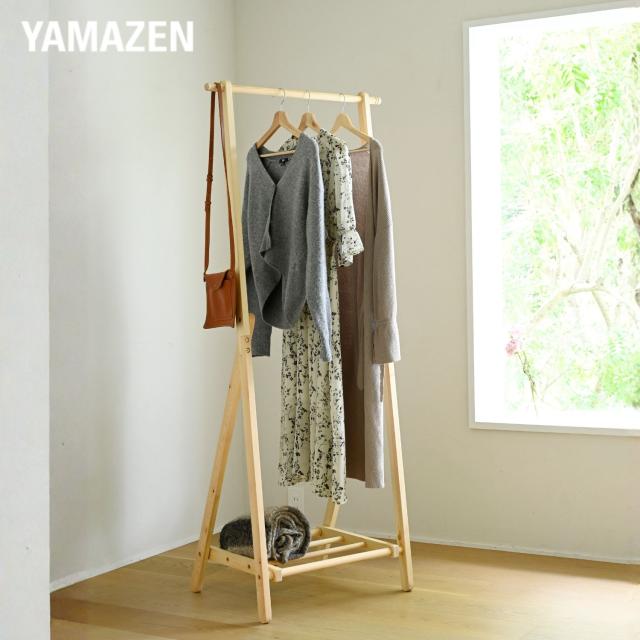 | 山善 YAMAZEN パイン材 ハンガーラック 棚付き 幅68.5 奥行47.5 高さ165cm |