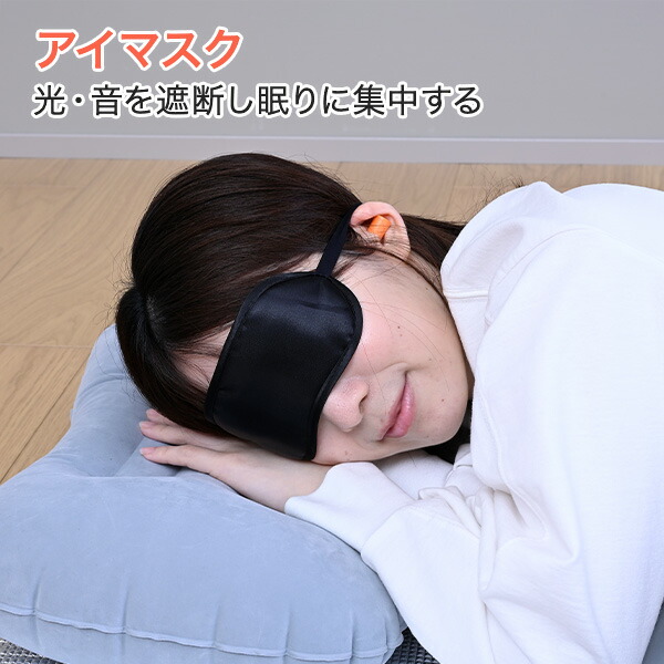 | 材質 | 寝袋:(表地)(裏地)(中綿)ポリエステル100% アイマスク:ポリエステル、ウレタンフォーム、ラテックス エア枕:(側生地)ポリ塩化ビニル、(内蔵ポンプ)TPU 耳栓:(本体)ポリウレタン、(ケース)ポリプロピレン アルミシート:発泡ポリエチレン、アルミ蒸着フォルム |