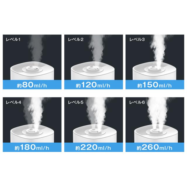 - リビングで使っている加湿器が壊れ購入しました。使い始め、霧が出なくて焦りましたが、半日くらいで霧が出るようになりました。噴霧量が思ってたより少なくて、レベル6で使っています。こちらで何度か購入していま...
