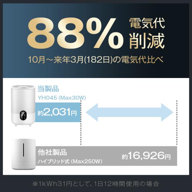 - 今回、購入しました加湿器は、水の容量も多くコスパ良く満足しています。 後は、どの位の期間使用できるか(故障しないか)だと思います。
