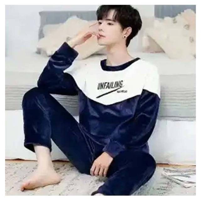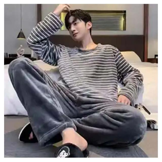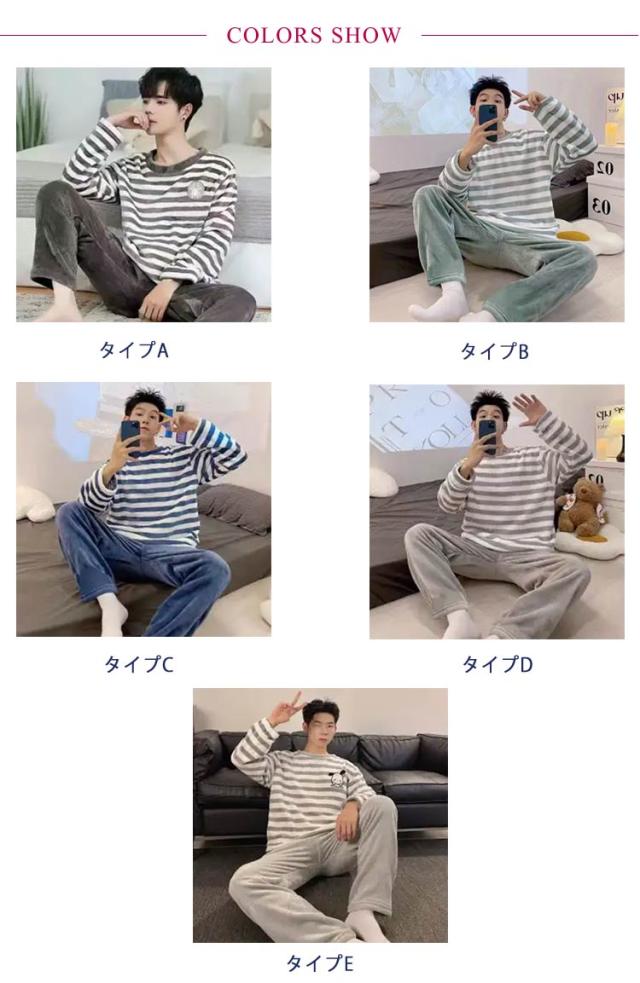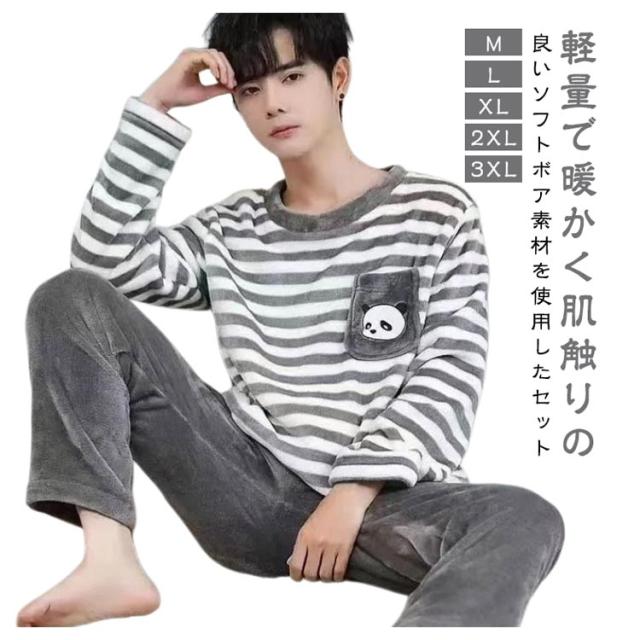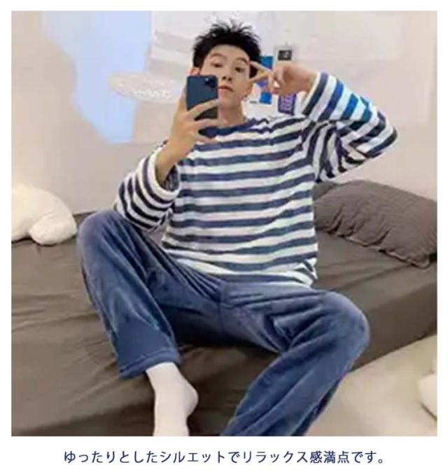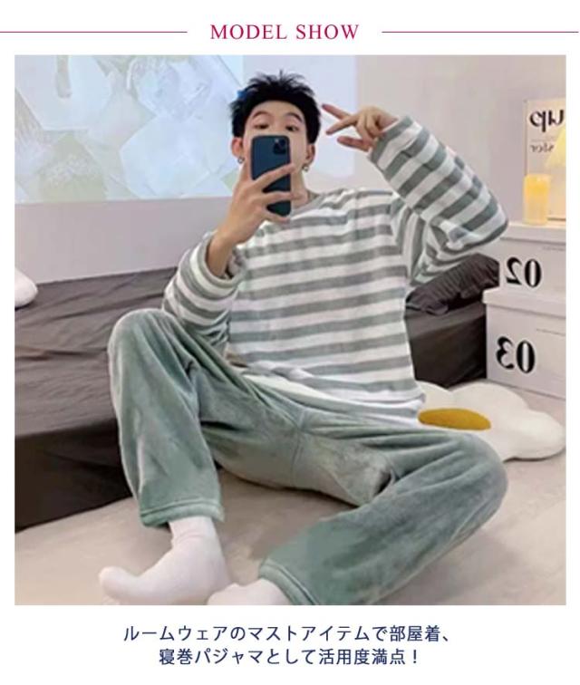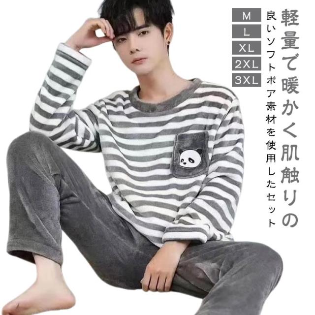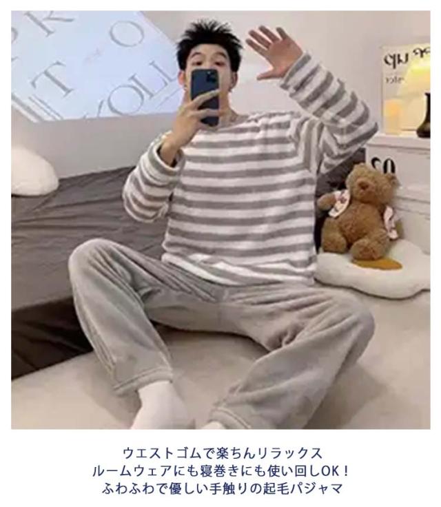 もこもこ 防寒 メンズ 長袖 ルームウェア ふんわり ゆったり 上下セット フランネル 保温 セットアップ トップス パンツ ボア 2点セット クルーネック 部屋着 可愛い ナイトウェア パジャマ パジャマ 部屋着 長ズボン 無地 ウエストゴム ルームウェア 寝巻き