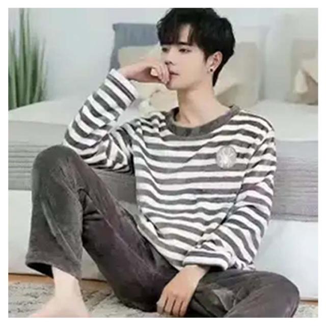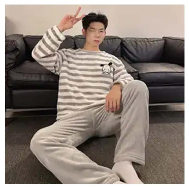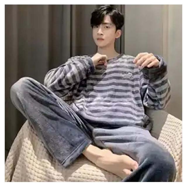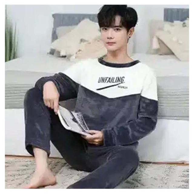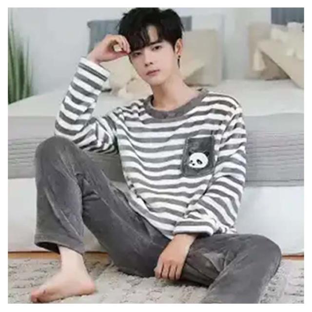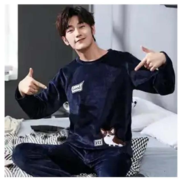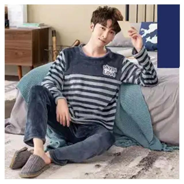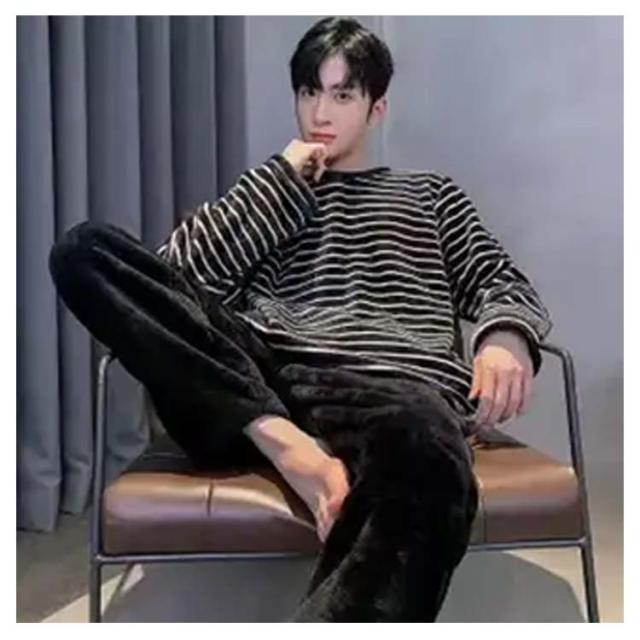 もこもこ 防寒 メンズ 長袖 ルームウェア ふんわり ゆったり 上下セット フランネル 保温 セットアップ トップス パンツ ボア 2点セット クルーネック 部屋着 可愛い ナイトウェア パジャマ パジャマ 部屋着 長ズボン 無地 ウエストゴム ルームウェア 寝巻き