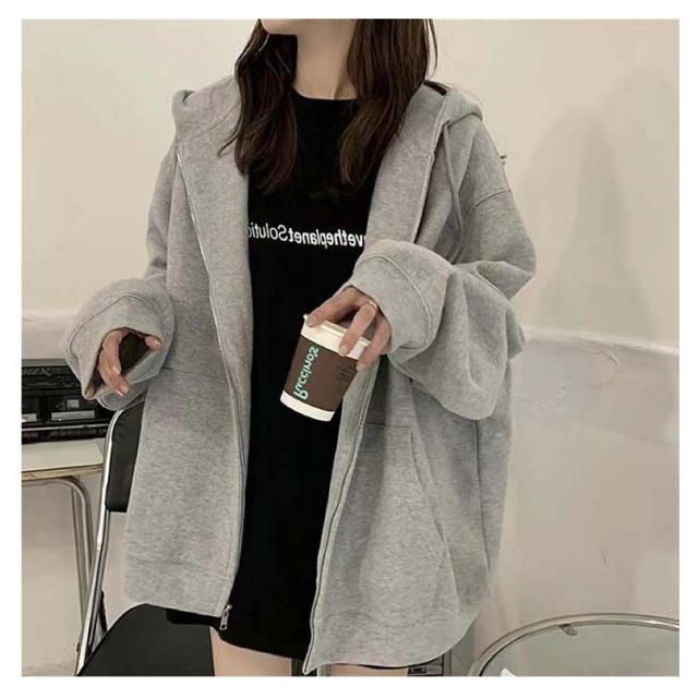 韓国 秋服 パーカー 裏起毛 ジップアップ 長袖 レディース 大人気 薄手 厚手パーカー 春服 秋冬 大人気 アウター 春秋 フード付き ライトアウター 可愛い スウェット 韓国ファッション 大きいサイズ おしゃれ ゆったり きれいめ 無地 グレー
