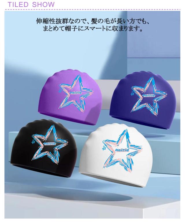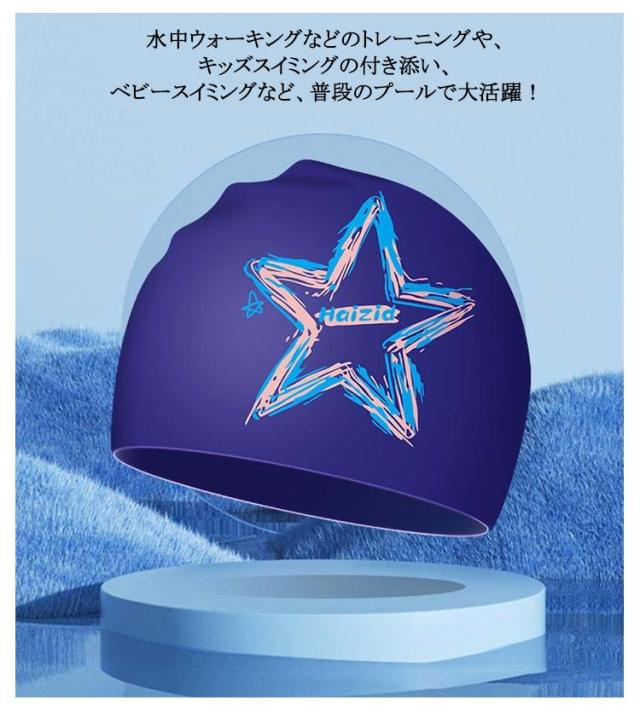 | 星柄のシリコンスイムキャップ 伸縮性抜群なので、髪の毛が長い方でも、まとめて帽子にスマートに収まります。 シリコン素材を用いており、頭にピッタリとフィットするので、水の抵抗を受けにくく、髪が濡れにくいので髪や頭皮を塩素から守ってくれます。 水中ウォーキングなどのトレーニングや、キッズスイミングの付き添い、ベビースイミングなど、普段のプールで大活躍! | |