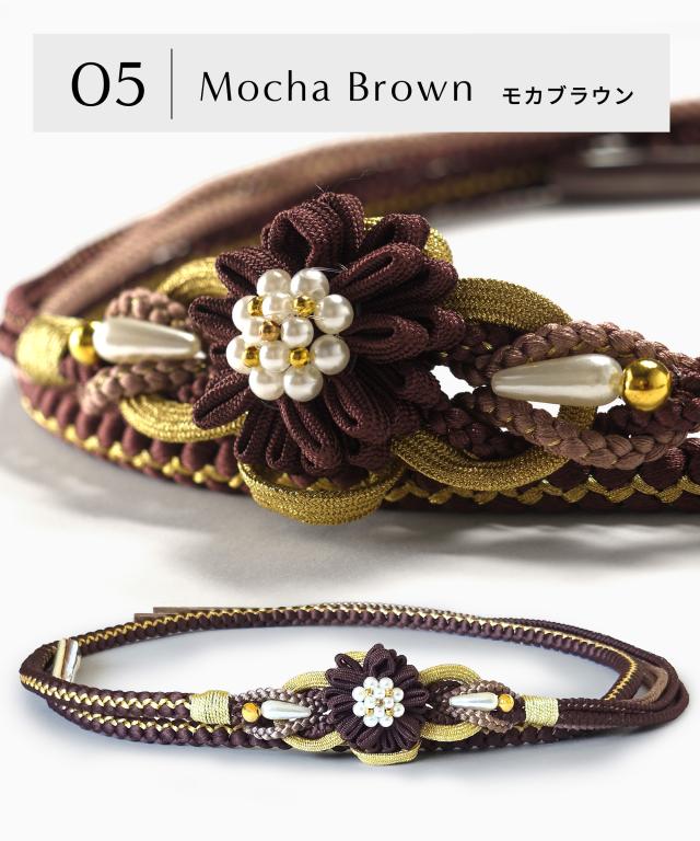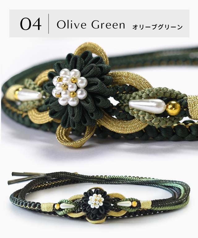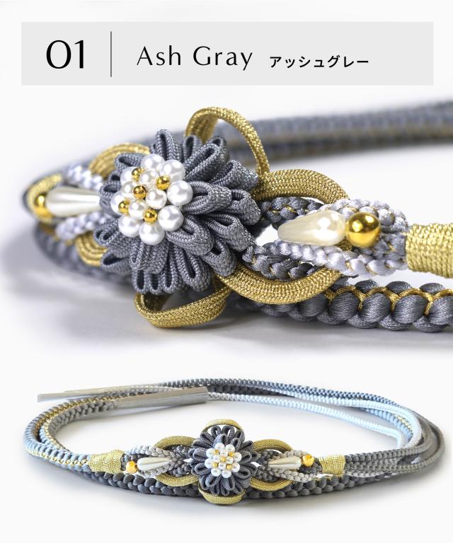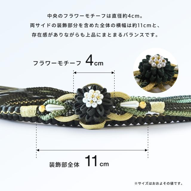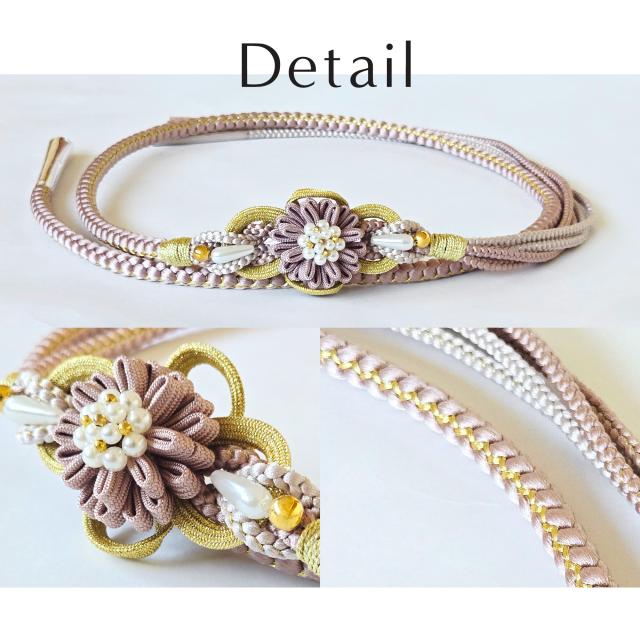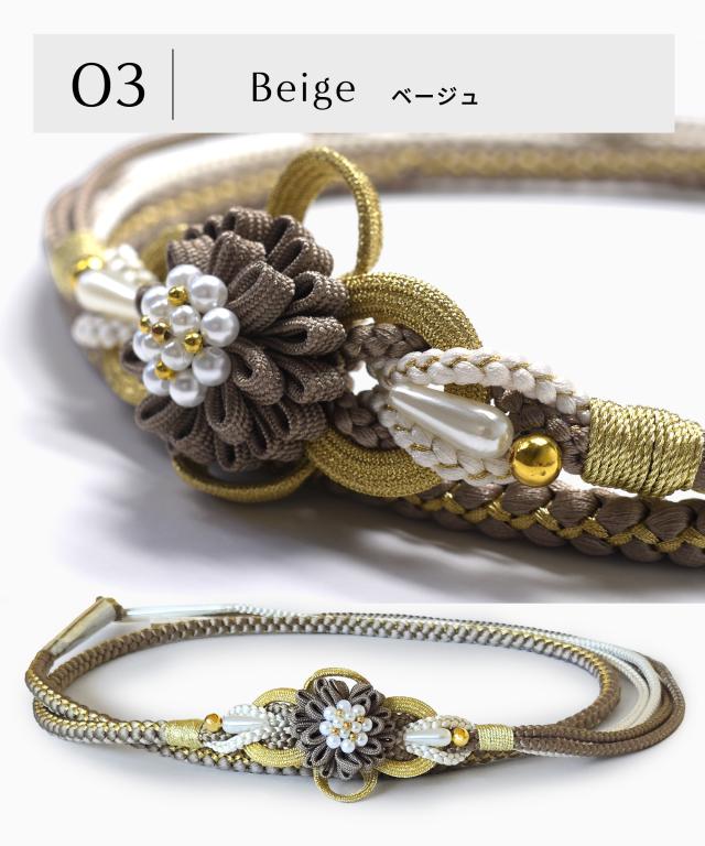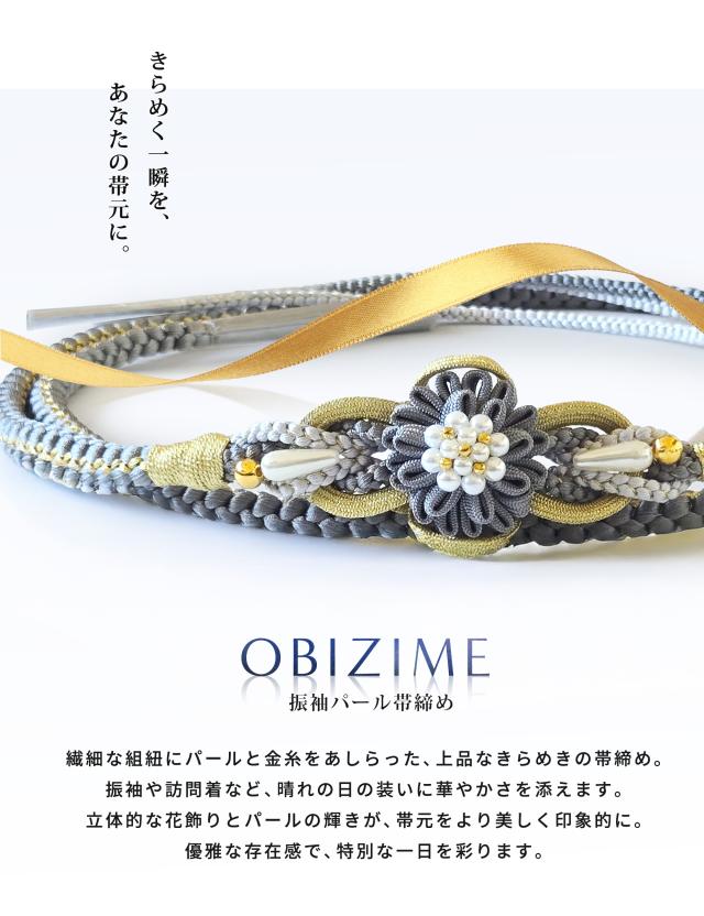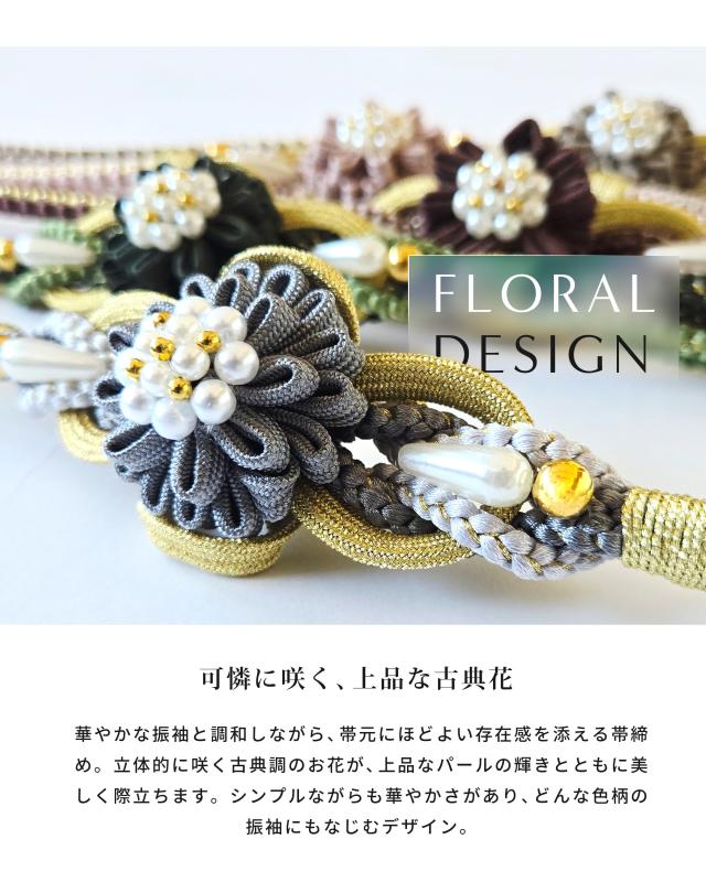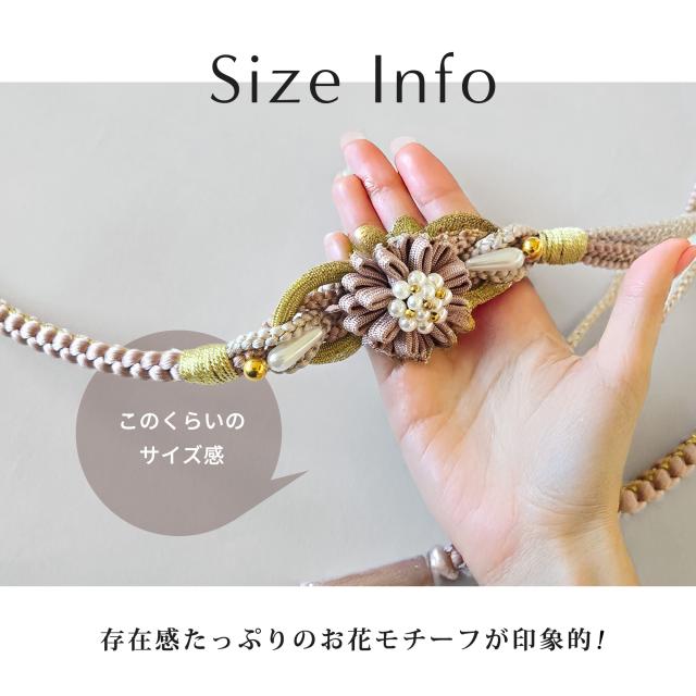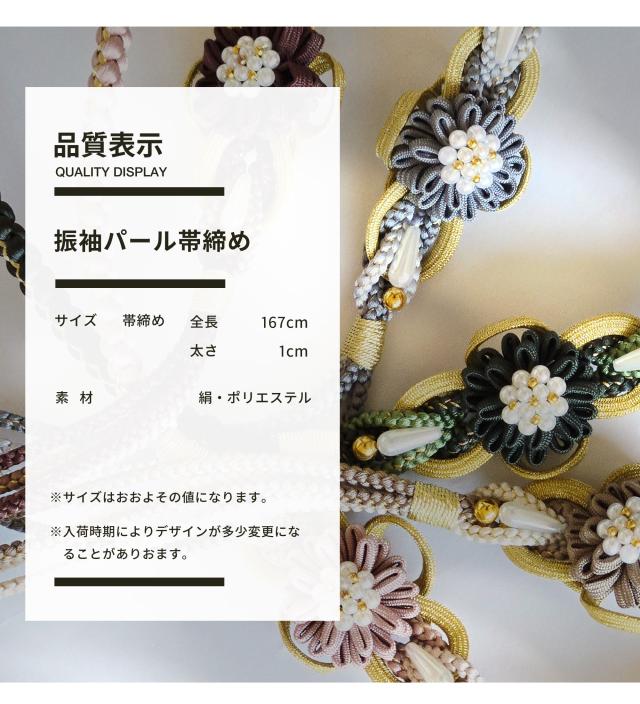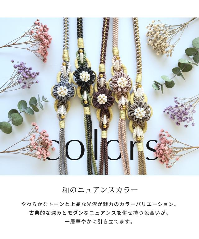 約11cmのチャームがインパクト大! 振袖用 帯締め 正絹 帯〆 組紐 選べる5色 グレー ピンク ベージュ グリーン ブラウン くすみカラー パール 和装小物 成人式